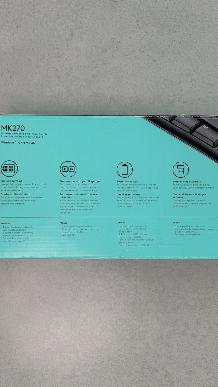 La combinación inalámbrica MK 270 combina la conveniencia y el confort de un teclado de tamaño normal con un compacto mouse contorneado. Con teclas multimedia, teclado numérico y preciso control del cursor, el trabajo puede ser mucho más fluido.